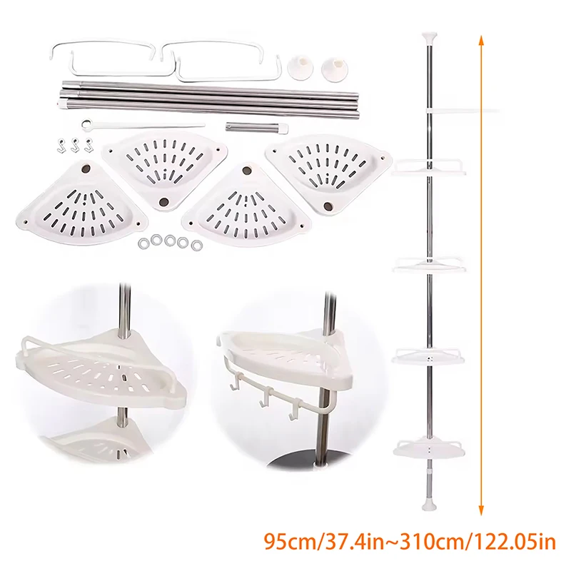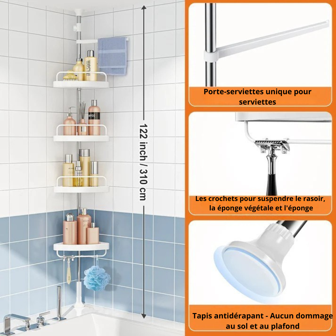 Optimisez chaque recoin avec cette étagère de douche d'angle sans perçage, réglable de 100 à 310 cm pour s’adapter à toutes les salles de bain.